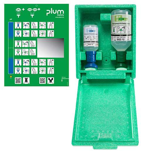 Die Plum Augenspülungen bieten eine rasche Hilfe wenn Schmutz, Staub, Splitter, andere Fremdkörper, Säuren oder alkalische Substanzen ins Auge gelangen. Platzieren Sie die Augenspüllösung in Reichweite des Arbeitsplatzes mit freiem Zugang. Das Ausmaß und die Folgen eines Unfalls können dadurch minimiert werden. Mit der Wandbox ist die Spüllösung optimal aufgehoben. Mit einer Haltbarkeit von 3 Jahren bei Nichtgebrauch ist auch die wirtschaftliche Komponente gut gelöst.
